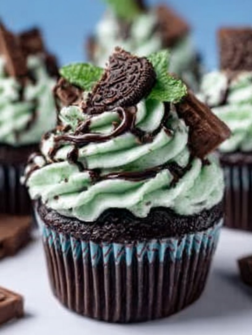 Andes Mint Chocolate Cupcakes with Mint Chocolate Oreo Buttercream Frosting