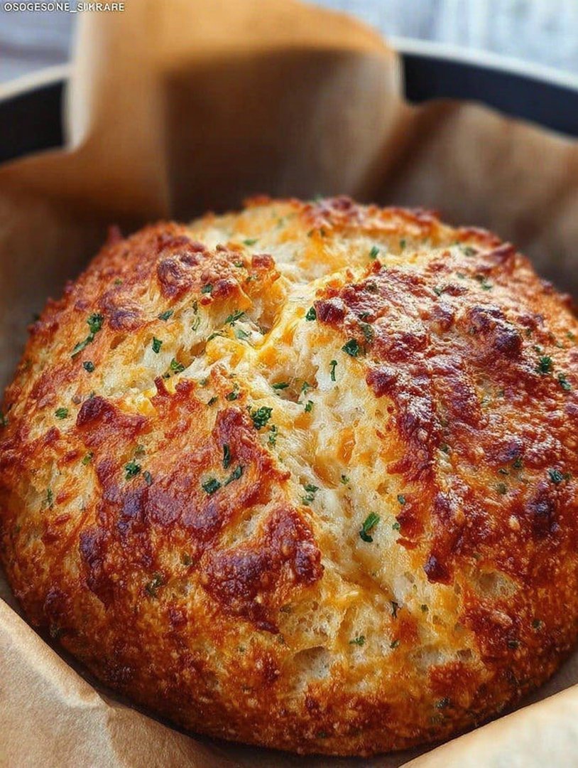 No Knead Cheddar Bread in the Dutch Oven