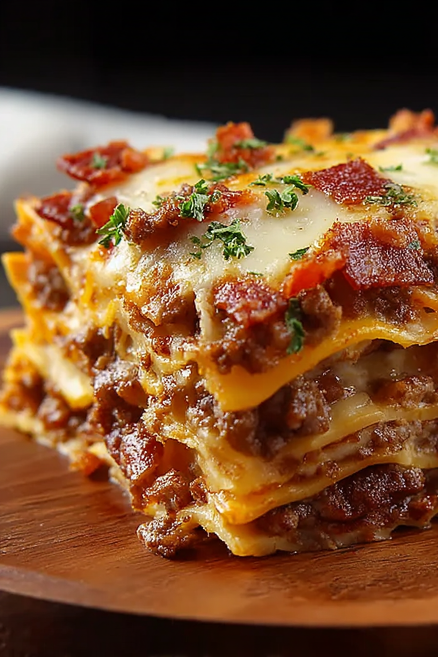 Parmesan Garlic Turkey Beef bacon Cheeseburger Lasagna Recipe