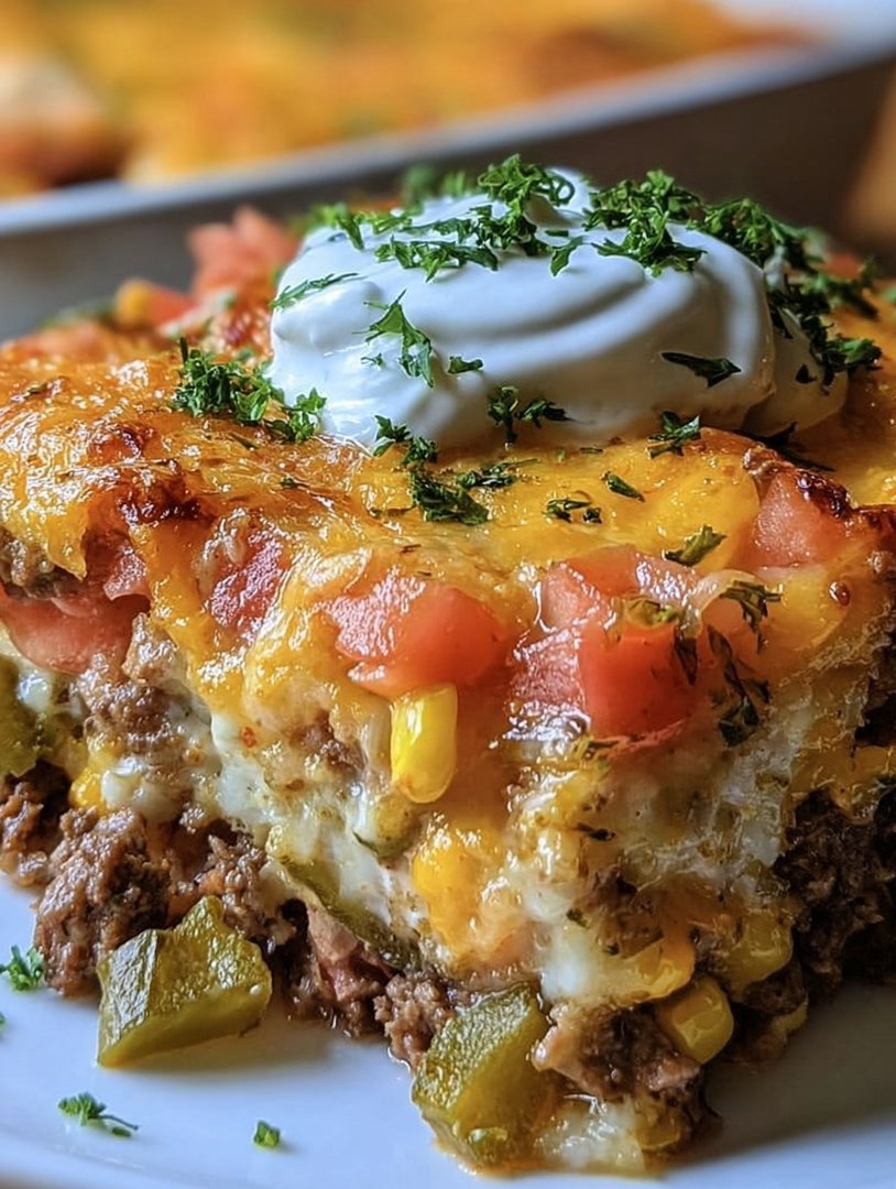 Let’s talk toppings! While the cheddar cheese is a classic, don’t be afraid to get a little adventurous. Crushed tortilla chips add a satisfying crunch, while a dollop of sour cream or Greek yogurt provides a tangy counterpoint to the richness of the casserole. You could also sprinkle on some chopped green onions, fresh cilantro, or even a drizzle of your favorite hot sauce for a spicy kick. Get the family involved and let everyone customize their own portion – it’s a guaranteed hit!