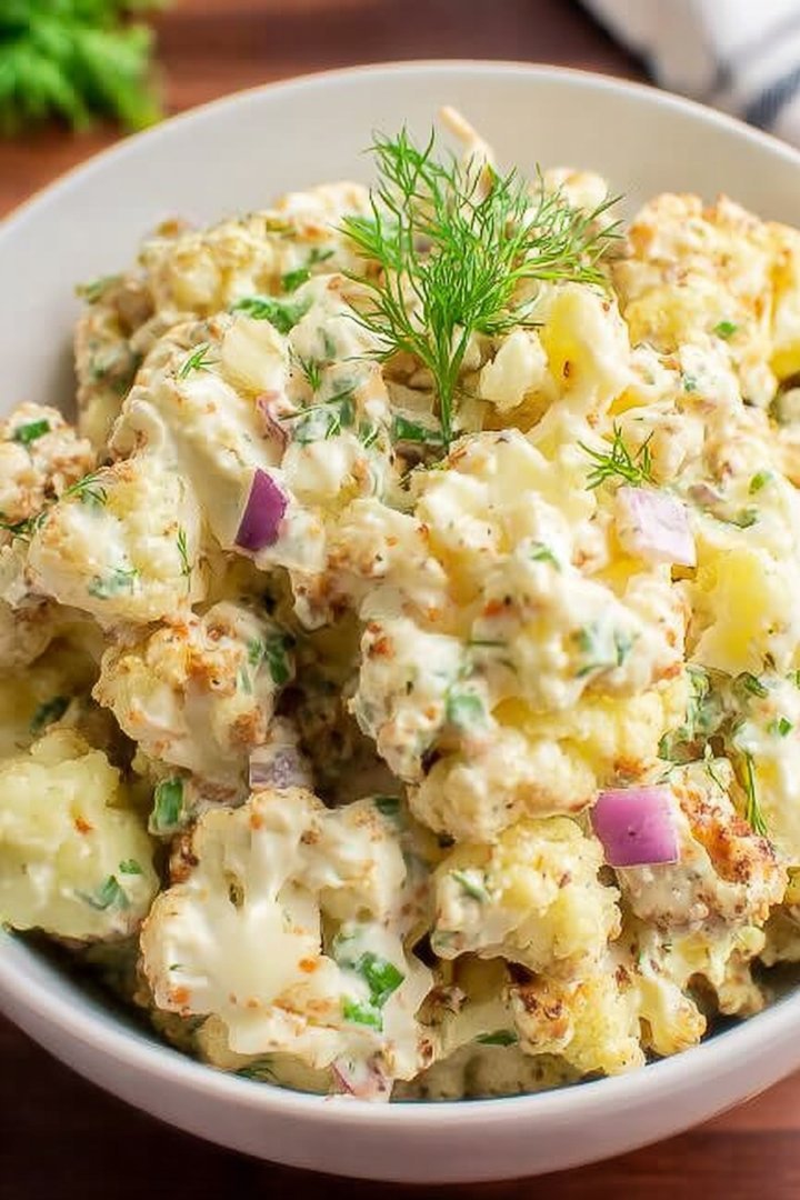 Imagine a creamy, tangy explosion in your mouth, a symphony of flavors that somehow manages to be both comforting and utterly refreshing. Cauliflower Potato Salad is the star of the show, ready to steal hearts and redefine what a side dish can be.