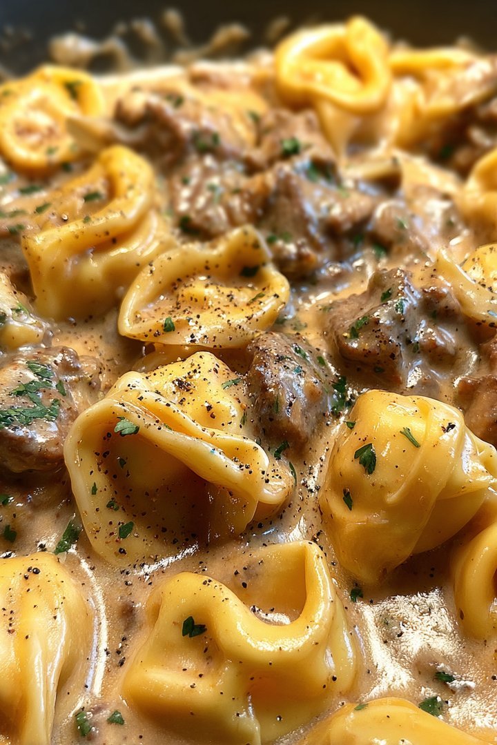 Cheesesteak Tortellini in Creamy Provolone Sauce