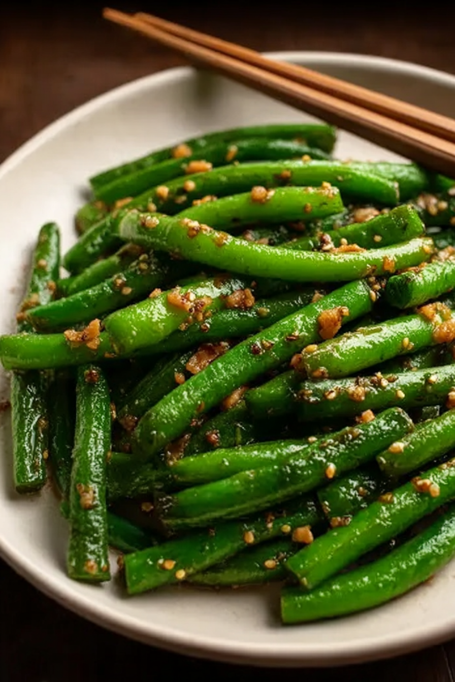 Transfer the Chinese Garlic Green Beans to a serving dish and serve immediately. Garnish with sesame seeds for an added touch of flavor and visual appeal. This dish pairs perfectly with grilled chicken, steamed rice, or your favorite protein.