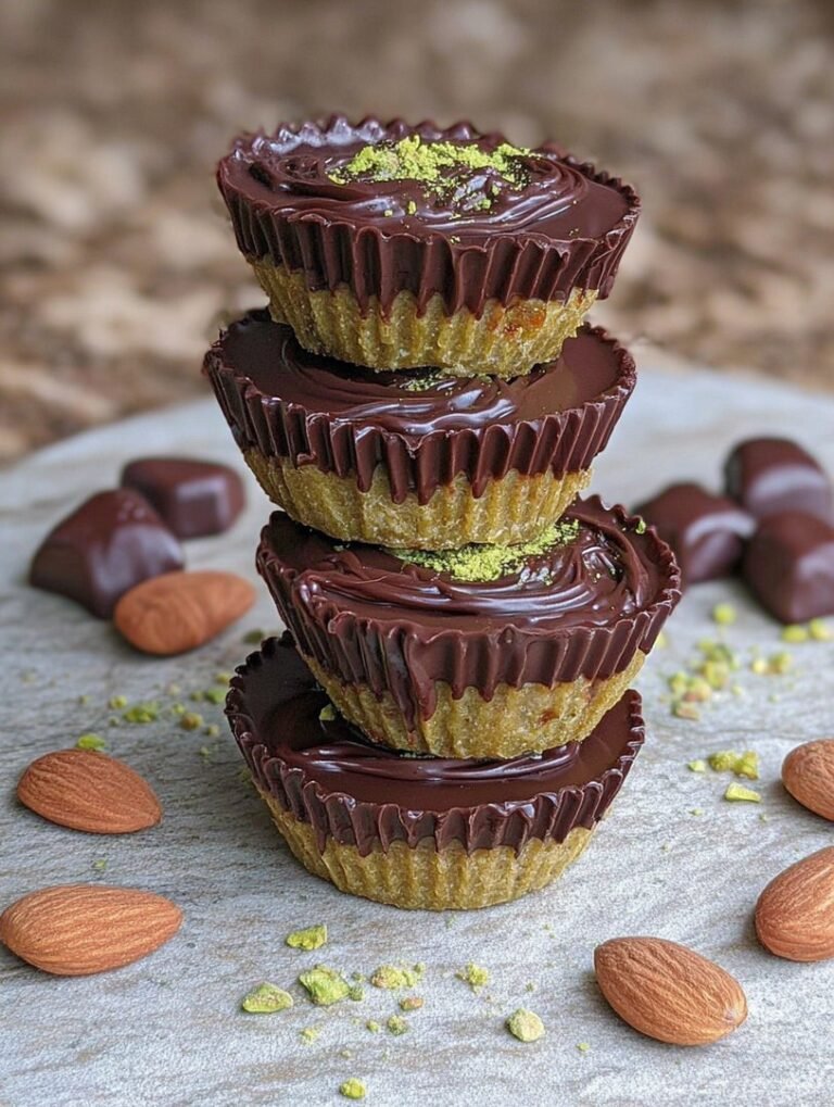 Indulge in Easy Dubai Chocolate Cups: elegant treats blending rich chocolate, sweet dates, and crunchy pistachios. Simple steps yield gourmet bliss! Full nutrition facts & instructions included.