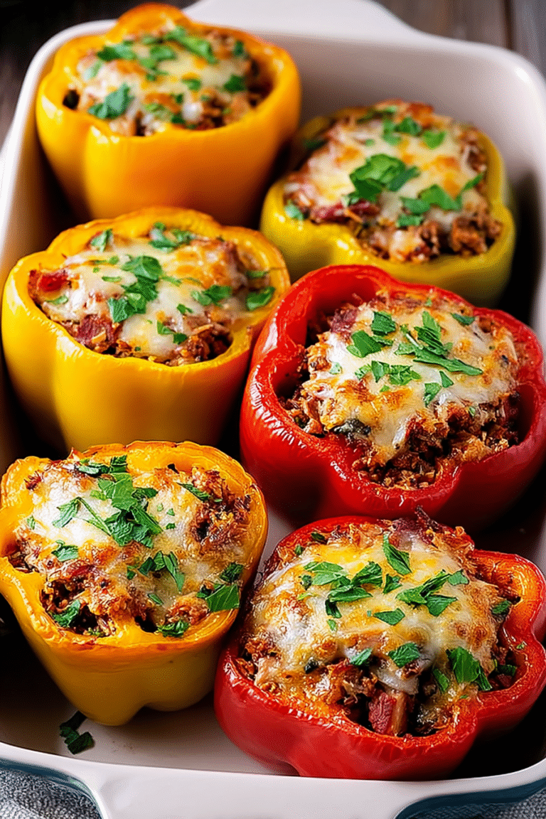 Absolutely! Transforming these stuffed peppers into a vegetarian or vegan delight is super simple. Swap out the ground meat for lentils, quinoa, or even crumbled tofu. For extra flavor, add some chopped mushrooms or walnuts. To keep it vegan, ensure any cheese you might be adding is plant-based. The rest of the recipe, with its vibrant veggies and savory sauce, is naturally vegetarian-friendly. Feel free to experiment with different combinations of plant-based proteins and vegetables to find your perfect veggie-loaded creation.
