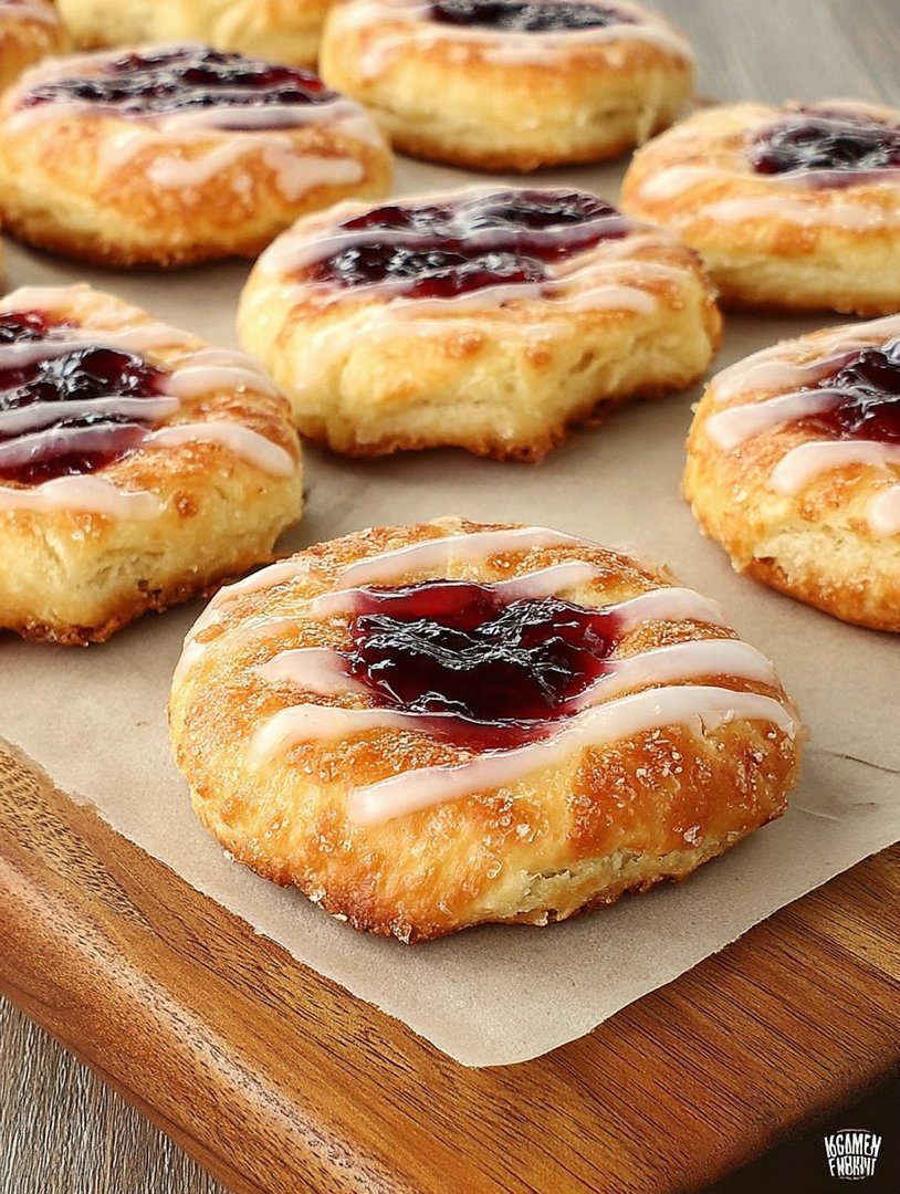 • For a beautiful finish, dust the warm danishes immediately with powdered sugar or drizzle with a simple lemon glaze made from powdered sugar and a splash of citrus juice.
