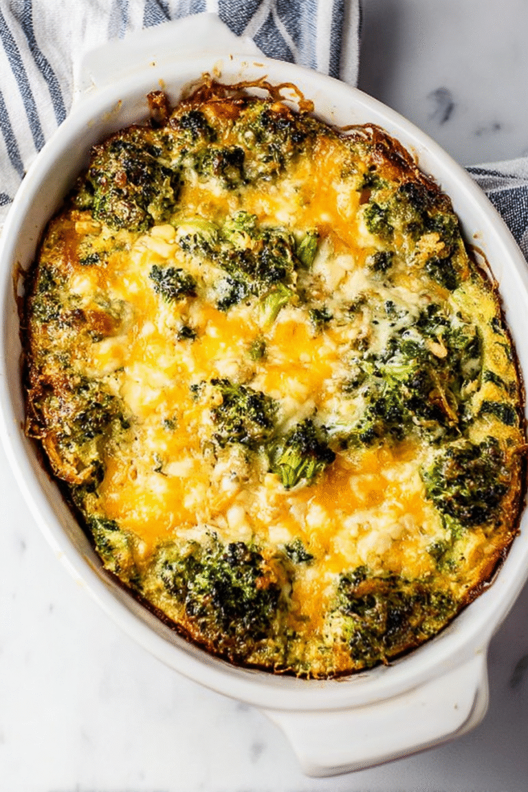 - Vibrant green veggies nestled in a golden-brown cheesy blanket make this casserole a feast for the eyes.