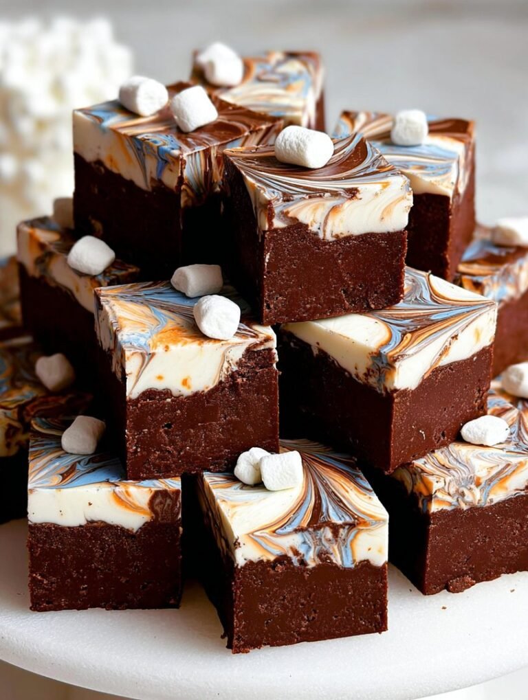 - Mint Chocolate Swirl:Add 1 teaspoon of mint extract to the chocolate base before pouring. Optionally, add a few drops of green food coloring to the marshmallow mixture for a festive holiday look.