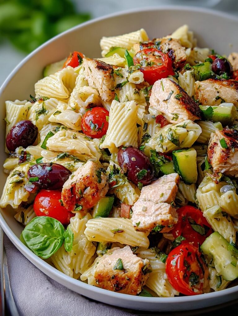 Delicious mediterranean chicken pasta salad recipe with detailed instructions and nutritional information.
