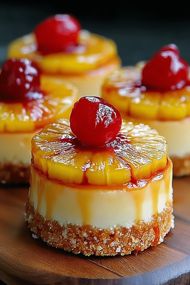 Let’s face it, life’s too short for boring desserts. Prepare yourself for an explosion of flavor with these Mini Pineapple Upside Down Cheesecakes—tiny bursts of tropical paradise in every bite. These aren’t your grandma’s cheesecakes; they’re a playful twist on a classic, perfect for any occasion.