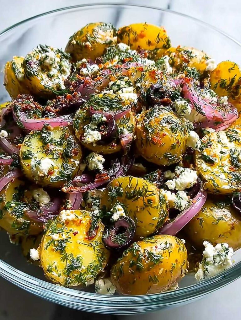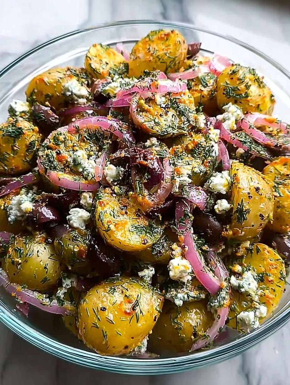 Elevate your gatherings with Olive Greek Potato Salad! Featuring tender baby potatoes, briny Kalamata olives, and creamy feta, this dish bursts with Mediterranean flavors.