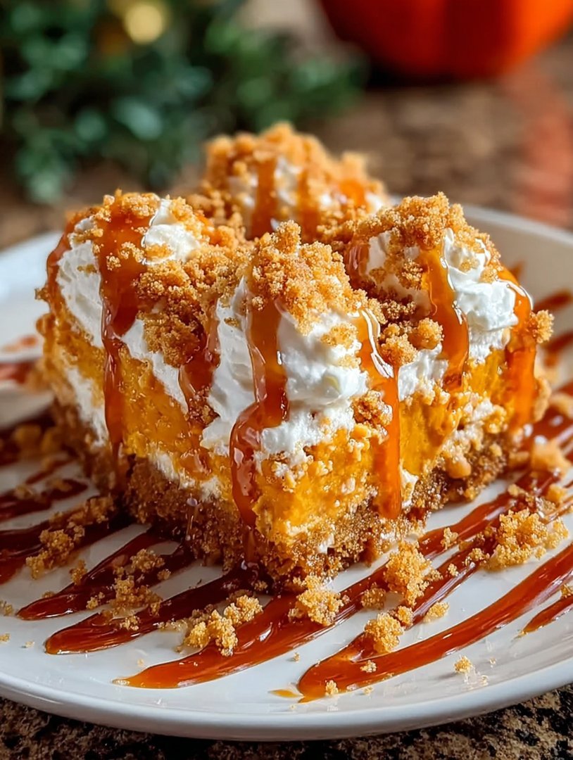 In summary, this Pumpkin Better Than Sex Cake is a crowd-pleaser that’s surprisingly simple to make. The combination of moist pumpkin cake, sweet condensed milk, gooey caramel, creamy whipped topping, and crunchy toffee bits creates an irresistible dessert. This cake is perfect for any occasion, from casual gatherings to holiday celebrations. Prepare to be the star baker with this decadent and unforgettable treat that will have everyone begging for the recipe!