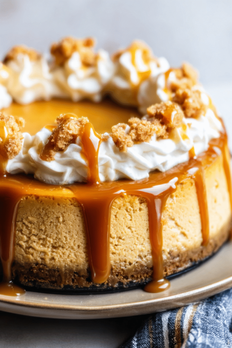 Imagine gathering around a crackling fireplace, the air filled with the scent of cinnamon and nutmeg, as you share this decadent Pumpkin Caramel Cheesecake with loved ones. It’s a dessert that transforms any occasion into a celebration, creating memories as sweet as the caramel drizzle. This cheesecake is truly more than just a dessert.