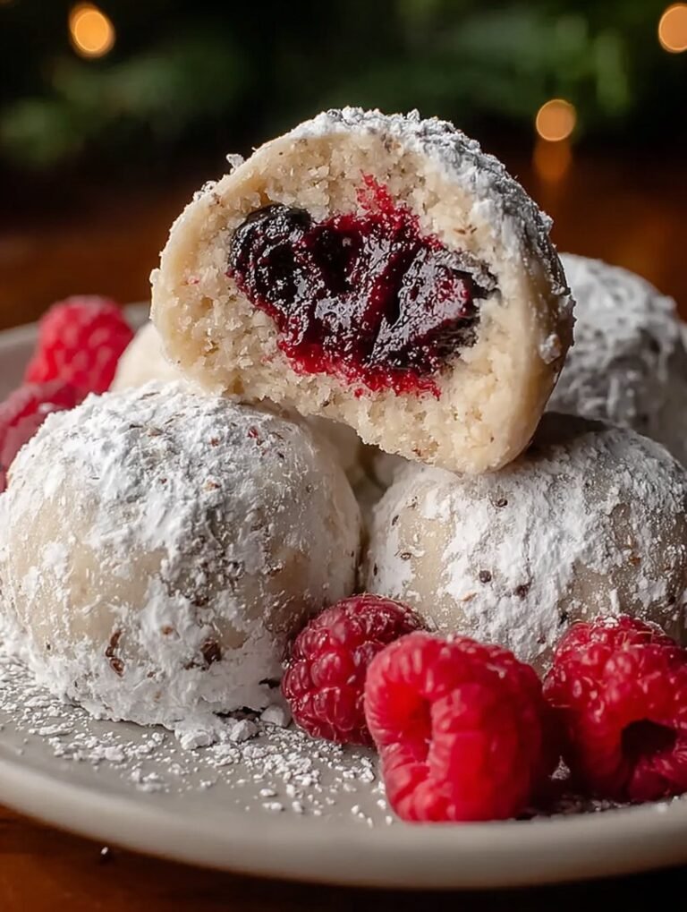 Desserts / Raspberry-Filled Almond Snowball Cookies