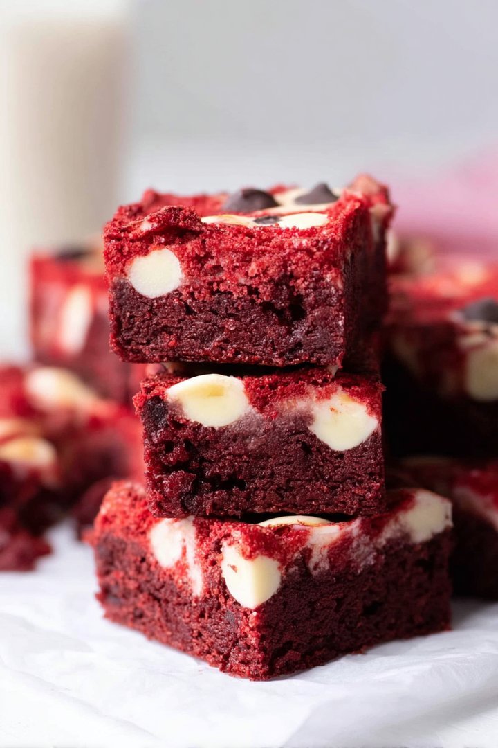Well, besides the fact that they’re basically a hug in dessert form, it’s the perfect balance of fudgy brownie and that signature red velvet tang! We’ve skipped any questionable ingredients, making these brownies delightfully guilt-free. It’s like a party in your mouth, and everyone’s invited. Plus, they’re surprisingly easy to make, which is always a bonus because who has time for complicated desserts? These are the kind of brownies that disappear faster than you can say, “Seconds, please!”