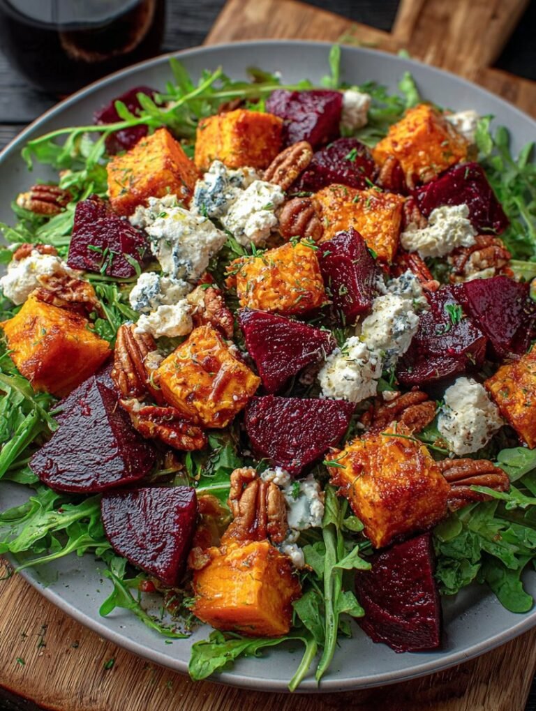 So Delicious Creamy Roasted Beet Salad with Sweet Potato & Feta: A Vibrant Dish to Brighten Your Table