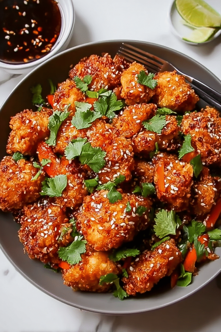 In a bowl, combine the chicken with the fish sauce substitute, lime juice, garlic, ginger, and cornstarch. Mix well and let it marinate for at least 15 minutes to allow the flavors to meld. This step is crucial for juicy and flavorful chicken bites.
